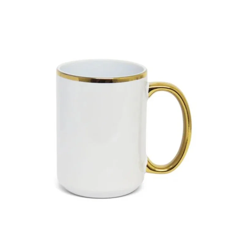 A alça e o colarinho da caneca são cromados em um tom dourado que imita a cor do ouro, adicionando um toque de sofisticação e elegância. Com uma pegada confortável na alça, você terá um bom apoio durante o uso da caneca. E, para garantir a qualidade da imagem final, a superfície branca da caneca é perfeita para receber a sublimação.