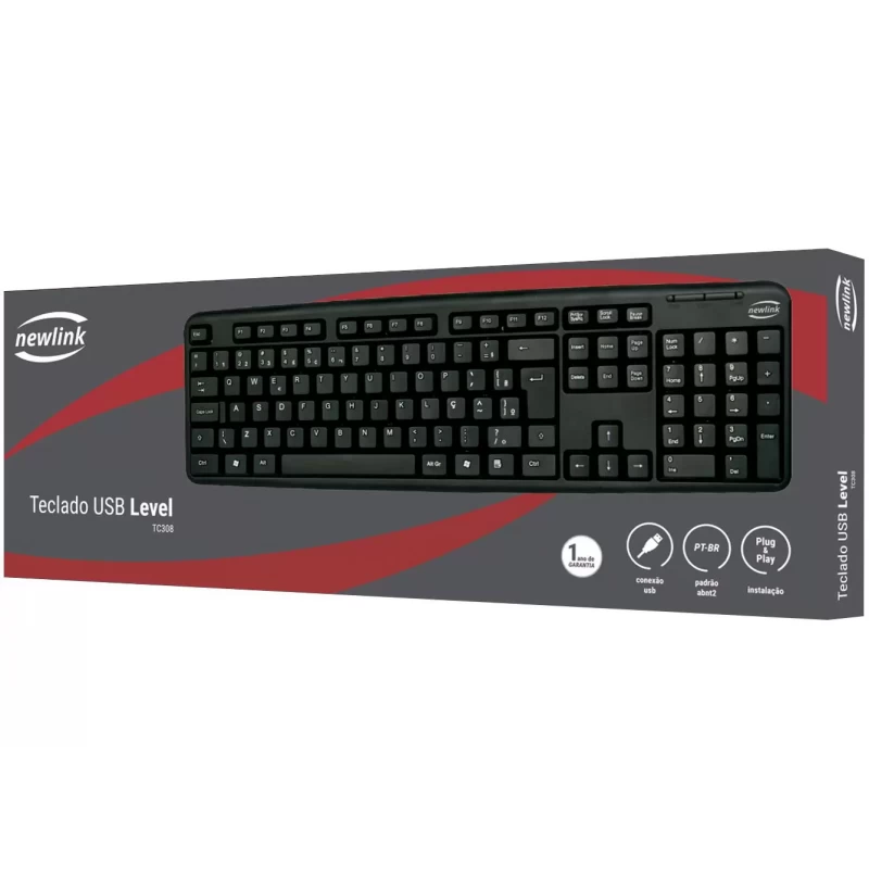 Teclado Usb Tc308 - Atacado Newlink Padrão ABNT2 107 teclas Conexão USB Plug & Play Dimensões: 45 x 11,8 x 2,1 cm Comprimento do cabo: 1,2 m.
