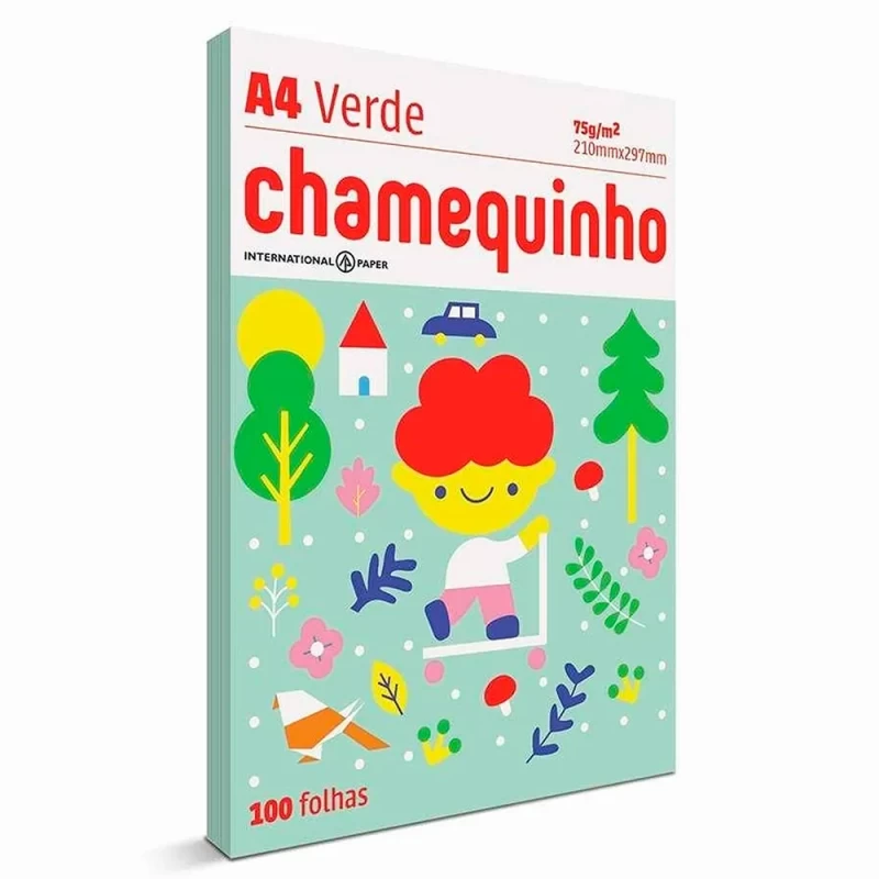 Papel Sulfite A4 75g Verde 100 folhas Chamequinho.